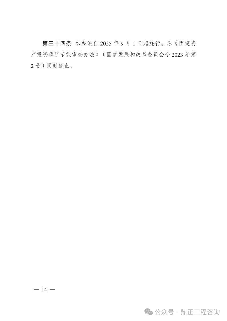 《辦法》自2025年9月1日起施行,原《固定資產(chǎn)投資項目節(jié)能審查辦法》(國家發(fā)展和改革委員會令2023年第2號)同時廢止。